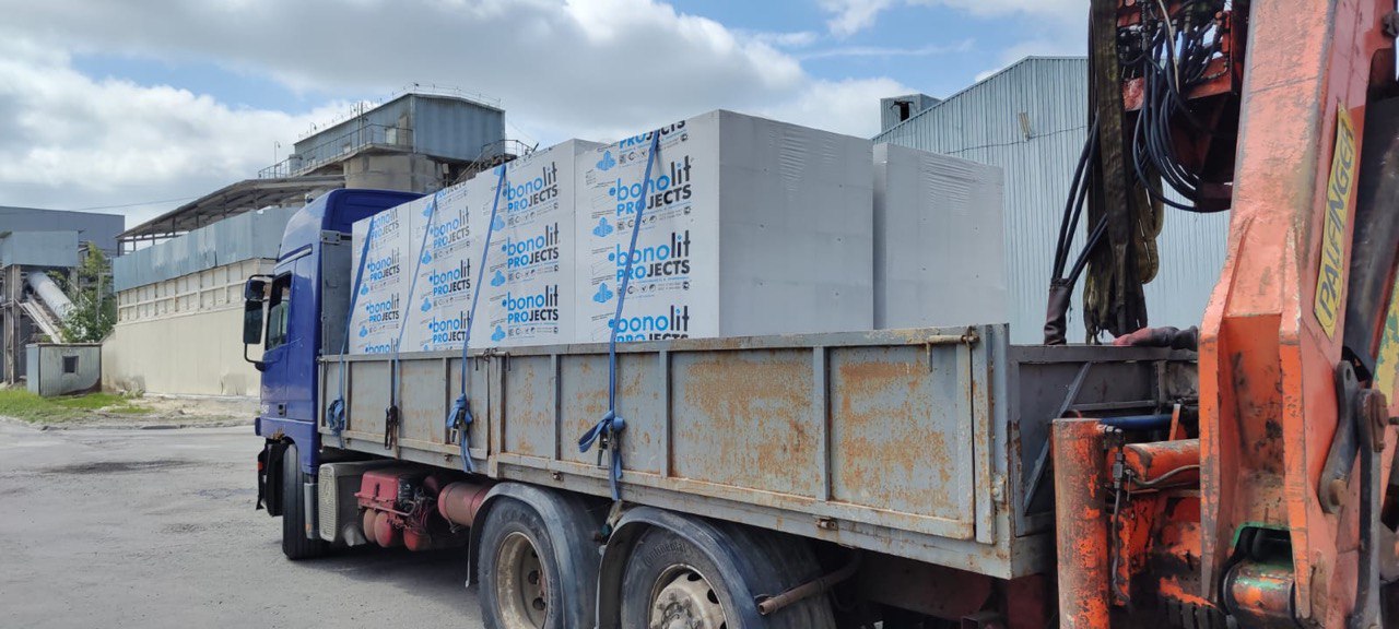 Доставка газобетонных блоков Бонолит D300 осуществляется с использованием специализированного транспорта, что гарантирует сохранность материала.